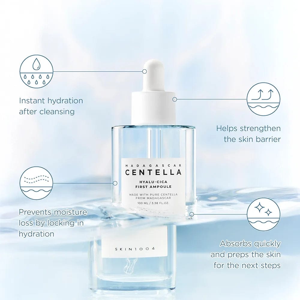 Faites l’expérience d’une hydratation intense et de soins apaisants avec SKIN1004 Madagascar Centella Hyalu-Cica First Ampoule. Cette ampoule légère et aqueuse est formulée avec cinq types d’acide hyaluronique, de sève de bouleau et d’extrait de lierre pour augmenter les niveaux d’humidité, hydrater la peau, en maintenant l’humidité pendant une période prolongée, ce qui aide à préparer votre peau pour les prochaines étapes de votre routine de soins de la peau. L’ajout de Centella Asiaitica et de COMPARAX soulage l’irritation, réduit les rougeurs et favorise la cicatrisation des plaies ainsi que le renforcement de la barrière cutanée. Idéal pour les peaux sensibles, normales et sèches, il calme et revitalise la peau, la laissant souple et rafraîchie.